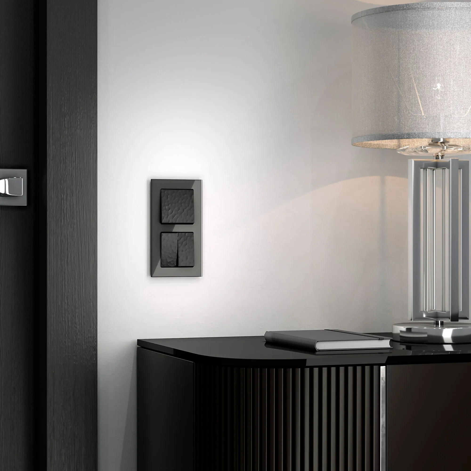 Выключатель двухклавишный проходной Werkel черный Hammer — управление светом из двух и более точек