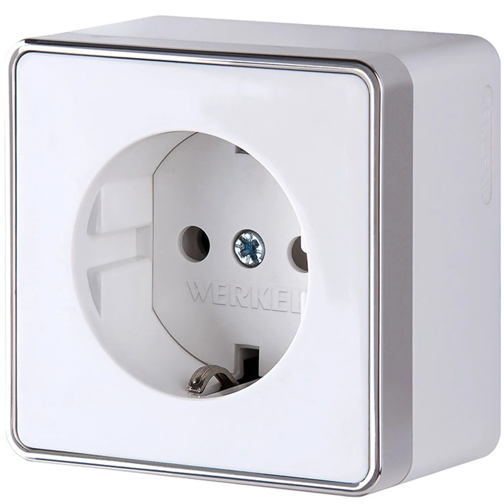 Накладная розетка с заземлением от Werkel серии Gallant в белом цвете – это надежный и безопасный аксессуар для вашего дома или офиса. Эта модель оснащена заземляющим контактом, что обеспечивает дополнительную защиту от поражения электрическим током и предотвращает возникновение статического электричества.