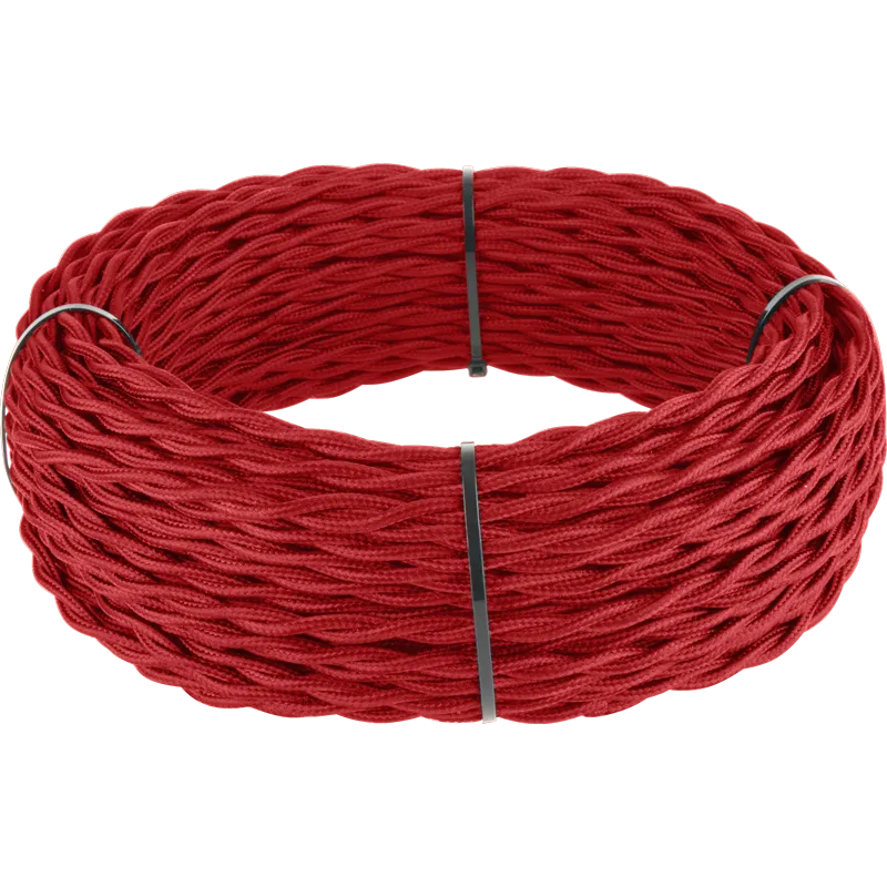 Ретро кабель витой 3х1,5 (красный). Многожильный медный провод обеспечивает гибкость кабеля и его высокие электротехнические характеристики. Наружная оплетка кабеля имитирует натуральный шелк.