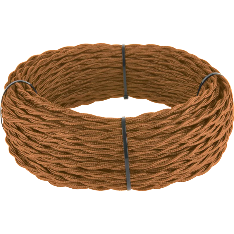 Ретро кабель витой 2х1,5 (медный). Многожильный медный провод обеспечивает гибкость кабеля и его высокие электротехнические характеристики. Наружная оплетка кабеля имитирует натуральный шелк.