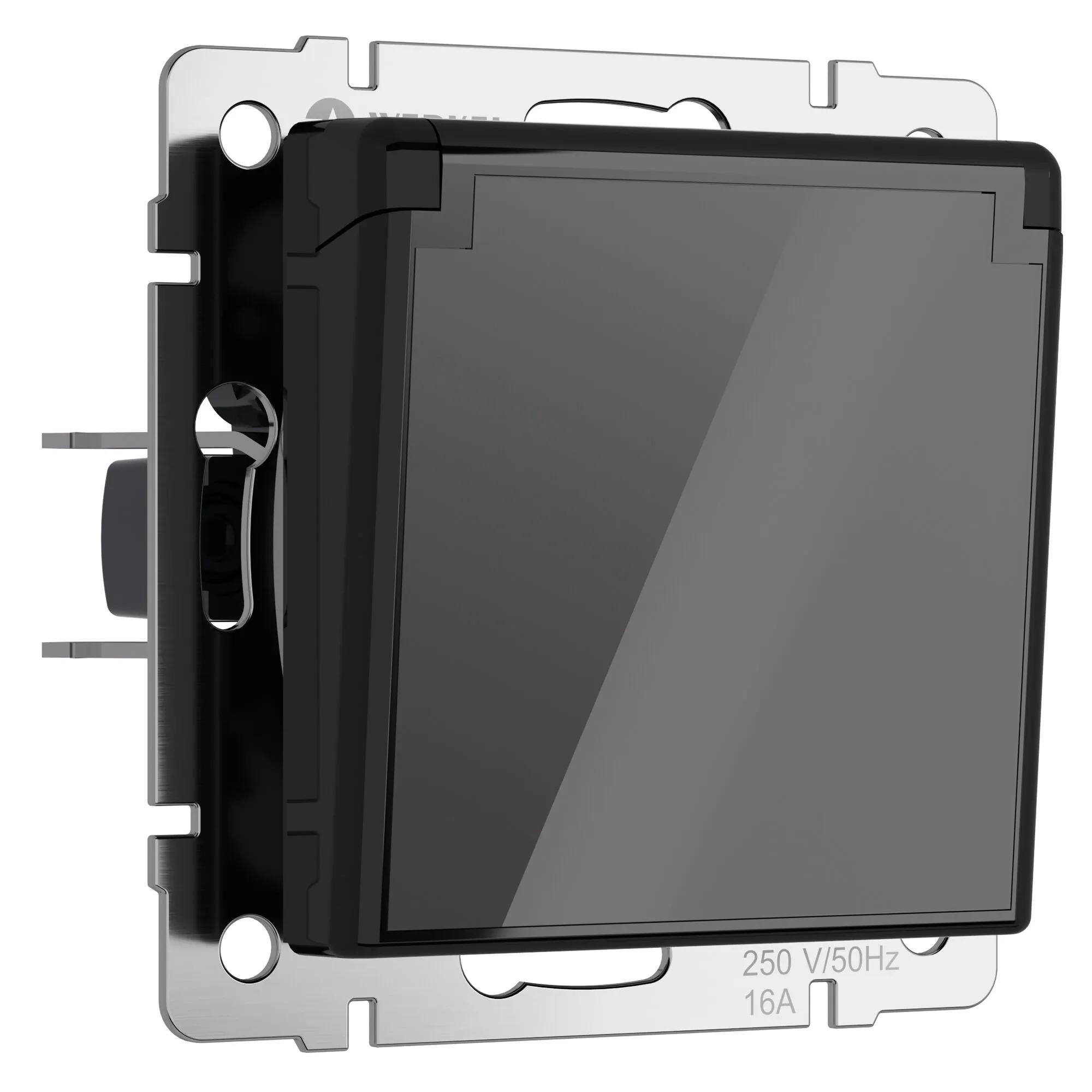 Розетка влагозащищенная с заземлением с крышкой и шторками (черный акрил) W1171248