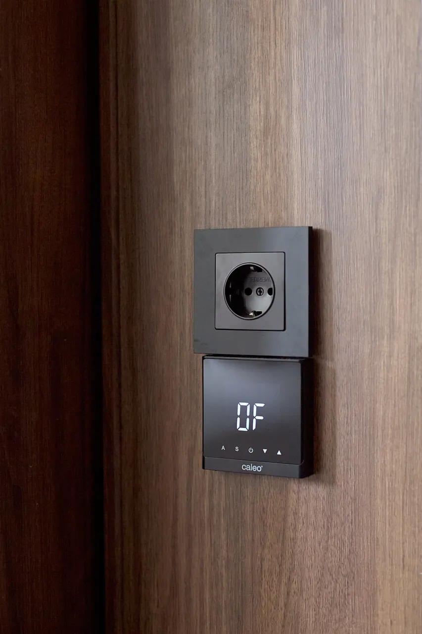 Одним из ключевых элементов интерьера стали электроустановочные изделия Werkel™, выполненные в ретро-стиле. Деревянные рамки плавной формы гармонично дополняют общую концепцию гостиной. Все механизмы имеют прочный керамический корпус, а поворотные выключатели оснащены характерными сменными ручками-барашками. Для разводки использовали ретропровод, закрепленный на стене с помощью керамических изоляторов, что добавило интерьеру аутентичности и шарма.